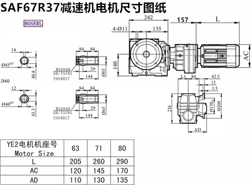 | 伺服電機渦輪渦桿減速機 | SAF68R38Y63M4 | SAF68R38DRS71M4 | SAF68RF38Y0.37KW |